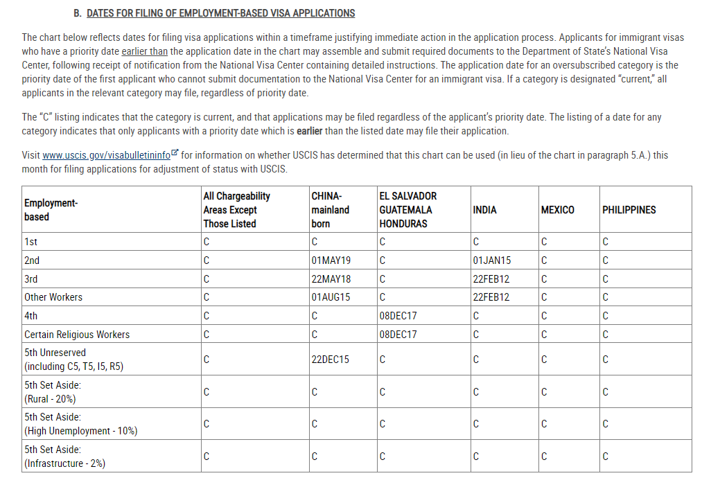 The Dates for Filing for the August 2022 Visa Bulletin for Mainland China and the rest of the world are as follows: