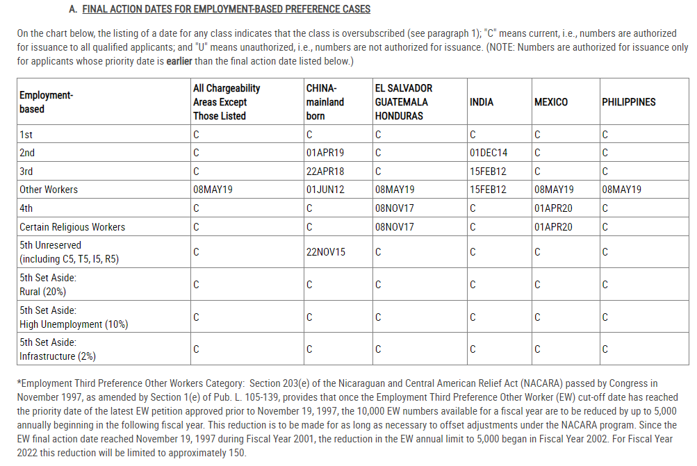 The Final Action Dates for the August 2022 Visa Bulletin for Mainland China, Vietnam and the rest of the world are as follows: