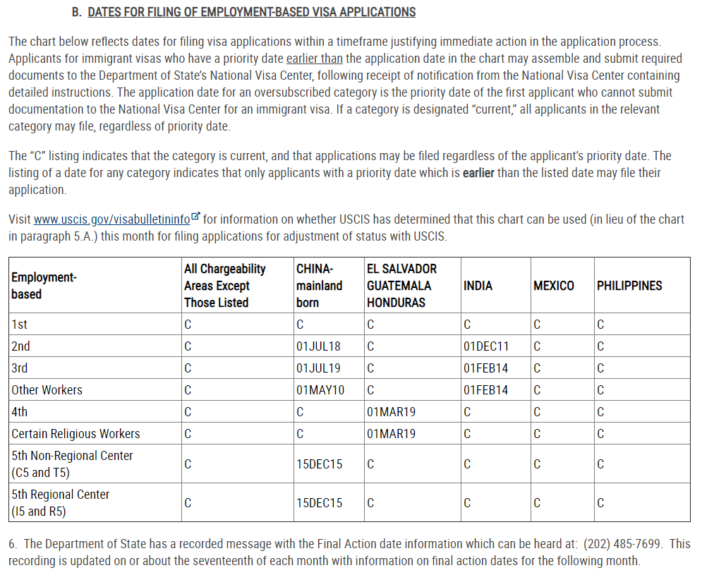 “C” or current for both 5th preference classes (EB-5 Regional Center and non-Regional Center).