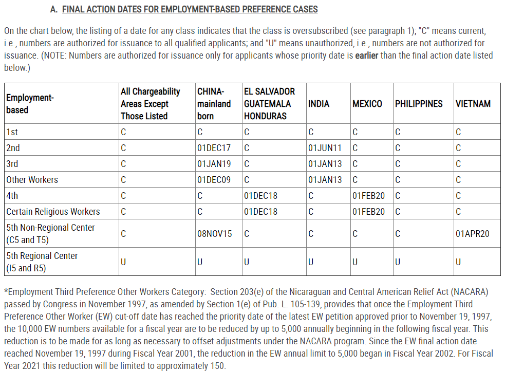 The Final Action Dates for the July 2021 Visa Bulletin for Mainland China, Vietnam and the rest of the world are as follows:
