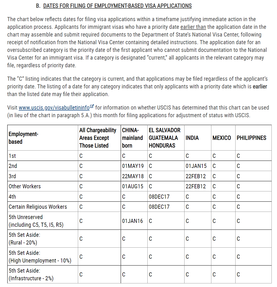 “C” or current for all 5th preference classes (EB-5 Regional Center, non-Regional Center, and reserved).