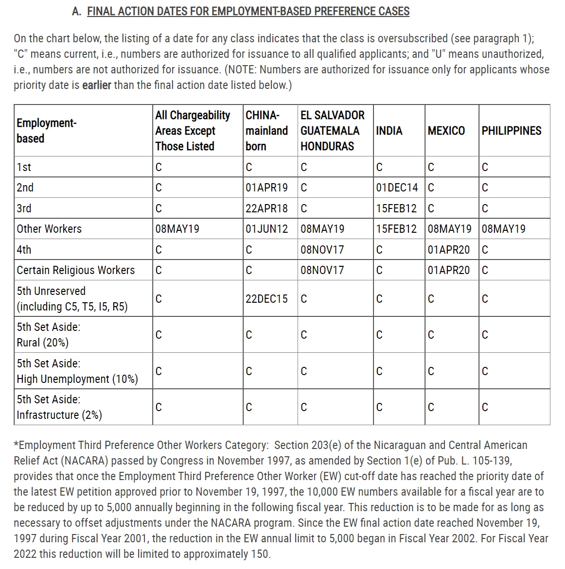 The Final Action Dates for the September 2022 Visa Bulletin for Mainland China, Vietnam and the rest of the world are as follows: